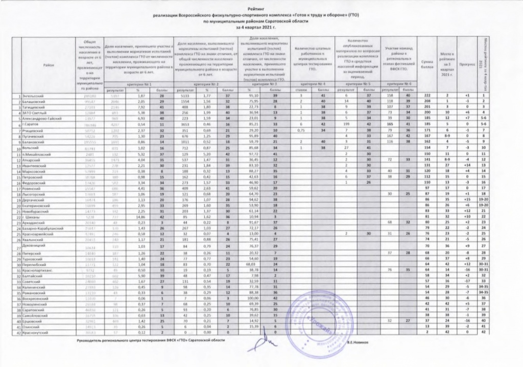 Итоги реализации ВФСК ГТО на территории Саратовской области за 2021г